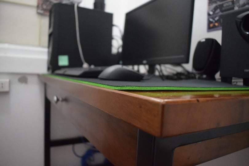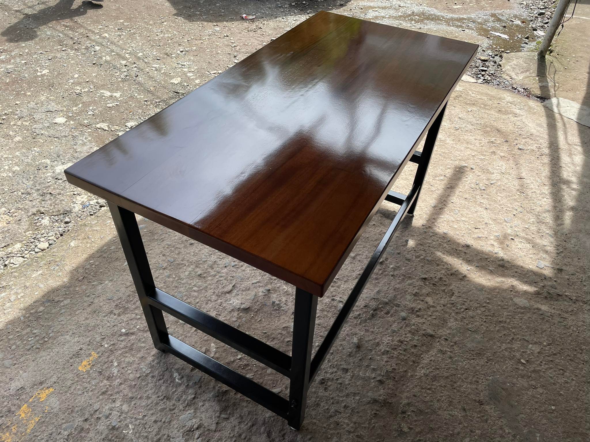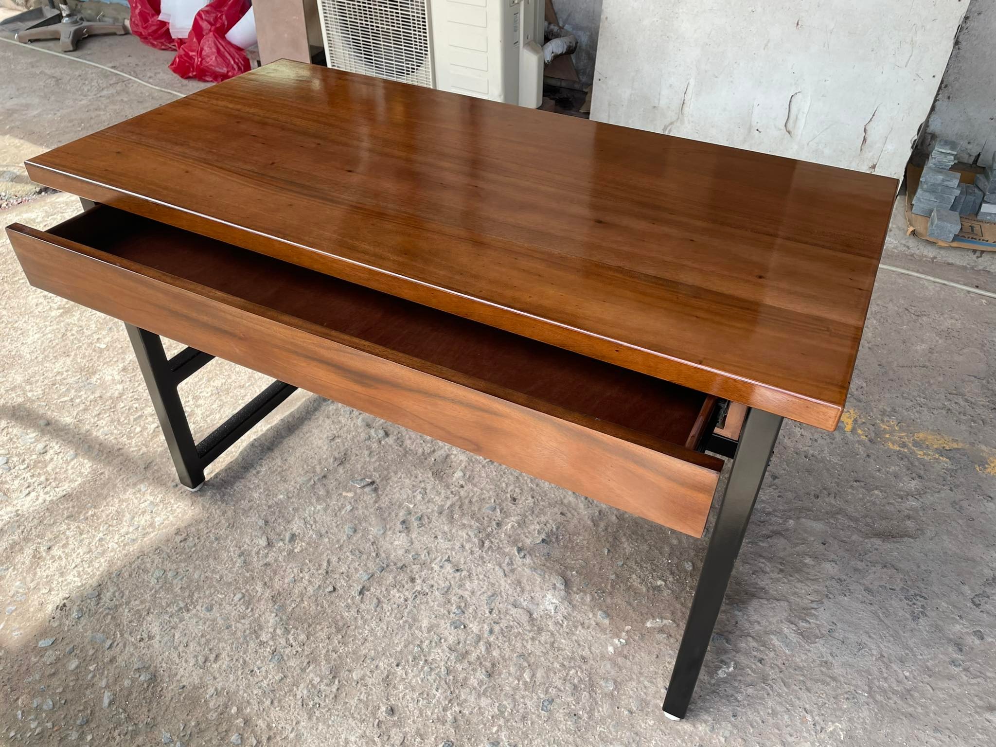 This is delivered to Basak, Lapu-Lapu City. Made with solid mahogany in walnut finish with metal tube legs and keyboard drawer.